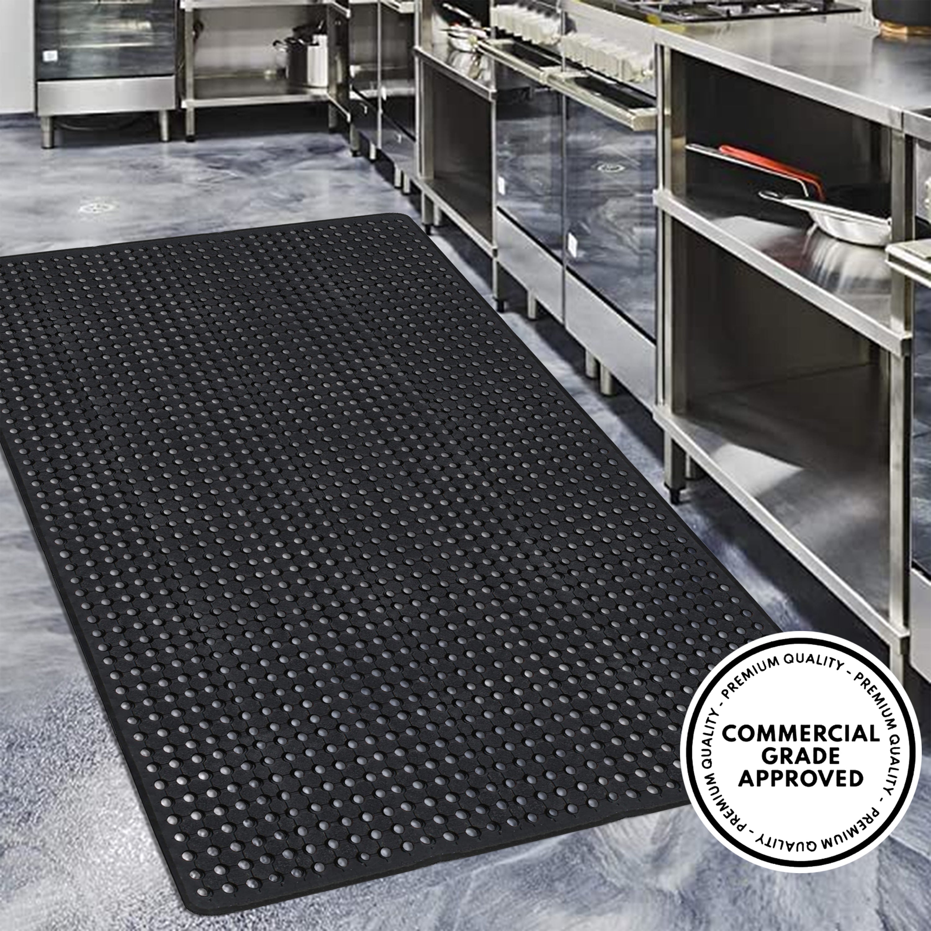 Textured rubber surface helps improve traction and reduce slipping in wet or high-use areas.