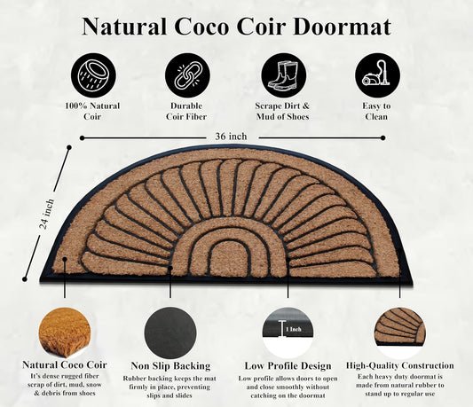 A1HC Natural Coir and Rubber Door Mat Thick Durable Doormat for Outdoor Entrance Semicircular