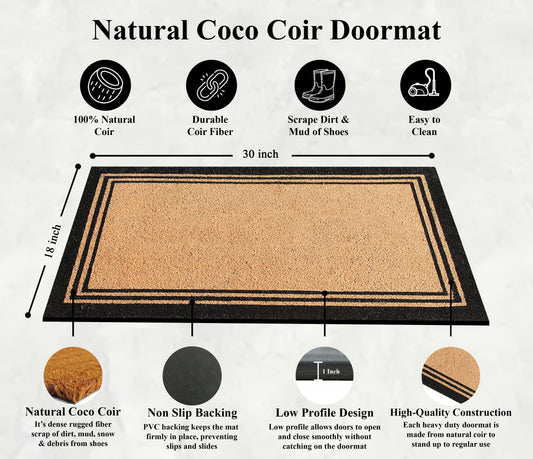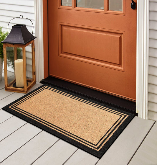 A1HC Natural Coir Doormat with Classic Border Heavy Duty PVC Backing Front Door Entry Mat 18" x 30"