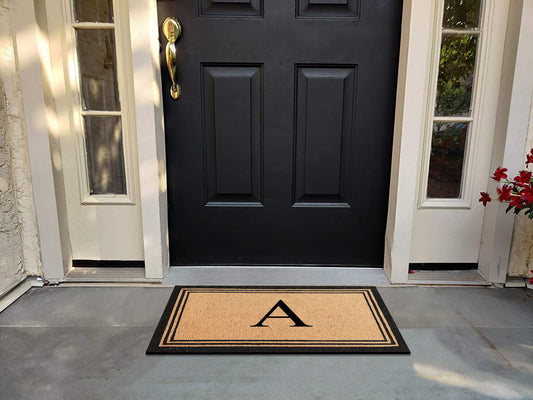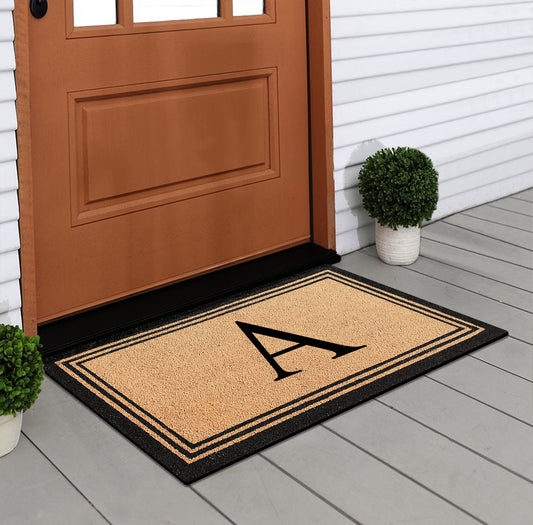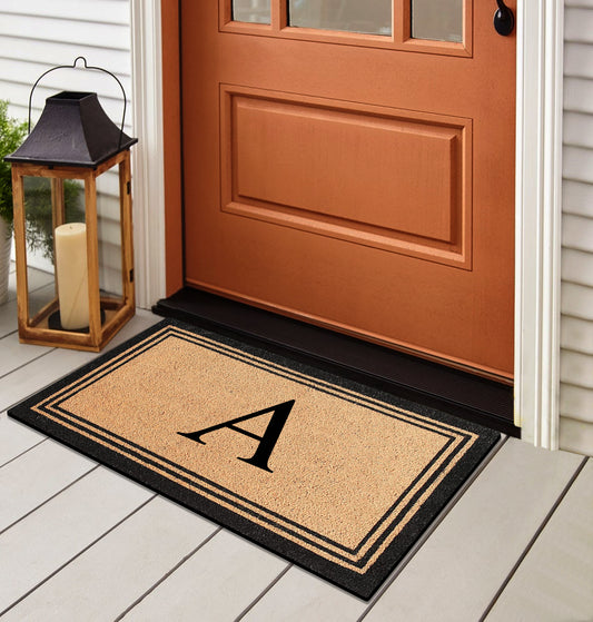A1HC Natural Coir and PVC Backing Classic Border Monogrammed Door Mat, Anti-Shed Entry Doormat