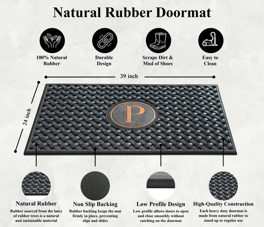 A1HC Large Monogrammed Rubber Doormat, 24" x 39" – Durable, All-Weather Entryway Mat for Indoor & Outdoor Use